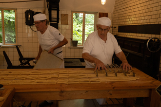 Billedet af de to bagersvende er taget inde i bageriet på Hjerl Hede.