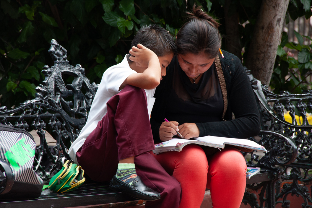 Lektiehjælp i parken.