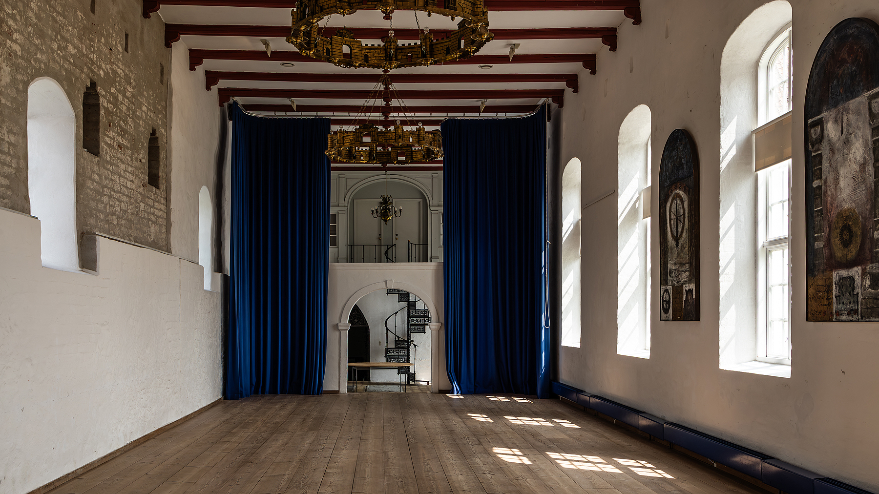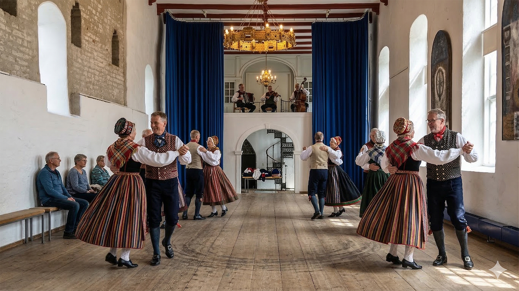 Lav foto af folkedansere i salen