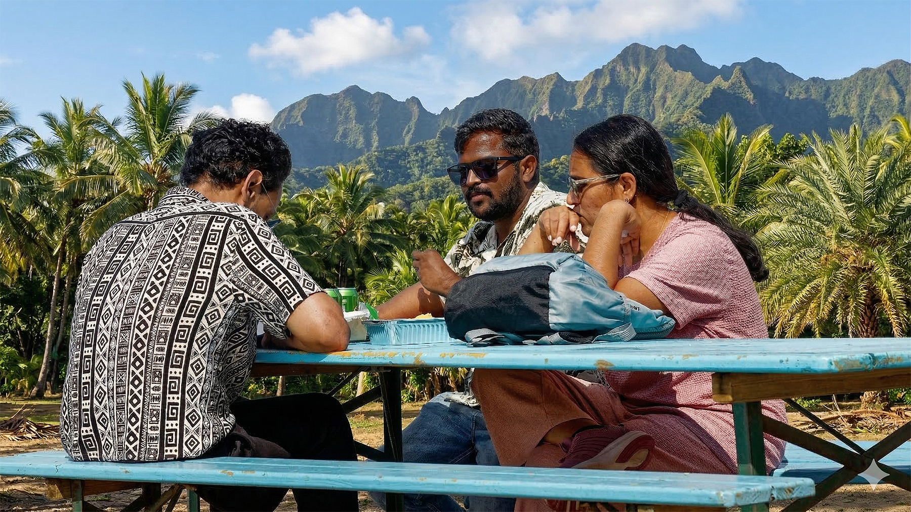 Tilføj en baggrund med palmer og bjerge